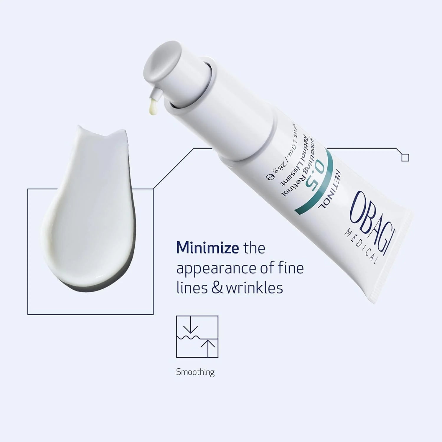 Work smarter, not harder with Obagi® Retinol 0.5. Our highly effective Retinol is a cream-based formula that helps to renew your skin and gently releases ingredients to minimize the appearance of fine lines and wrinkles while promoting skin turnover to help minimize visible signs of skin aging with minimal irritation. We've also included an airless pump to dispense the product easily while protecting the formula integrity and product performance.